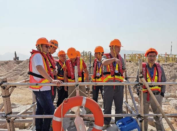 上午,betway足球反比分平台一行首先到达中国交建项目经理部,随后进行了安全生产培训,会后集体穿上反光衣、救生衣,带上安全帽登船直赴工地。工地上,基翔公司夏总对正在进行的深层水平位移监测、水位监测、岩心取样、软基处理、吹沙填海技术做了全面介绍,重点对监测技术与方法、设备进行了说明,我司人员各抒己见,找出大陆与香港工作方法及模式差异,学习香港先进经验,收获颇多。