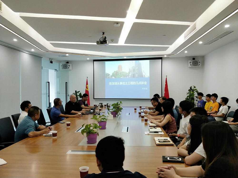 8月5日,何其诚教授莅临betway足球反比分平台,并作《在深圳从事岩土工程的几点体会》学术交流专题讲座。betway足球反比分平台副董事张文华、总经理王双龙、副总经理张先亮、总工程师高伟以及公司各专业技术员共计30余人听取了讲座。