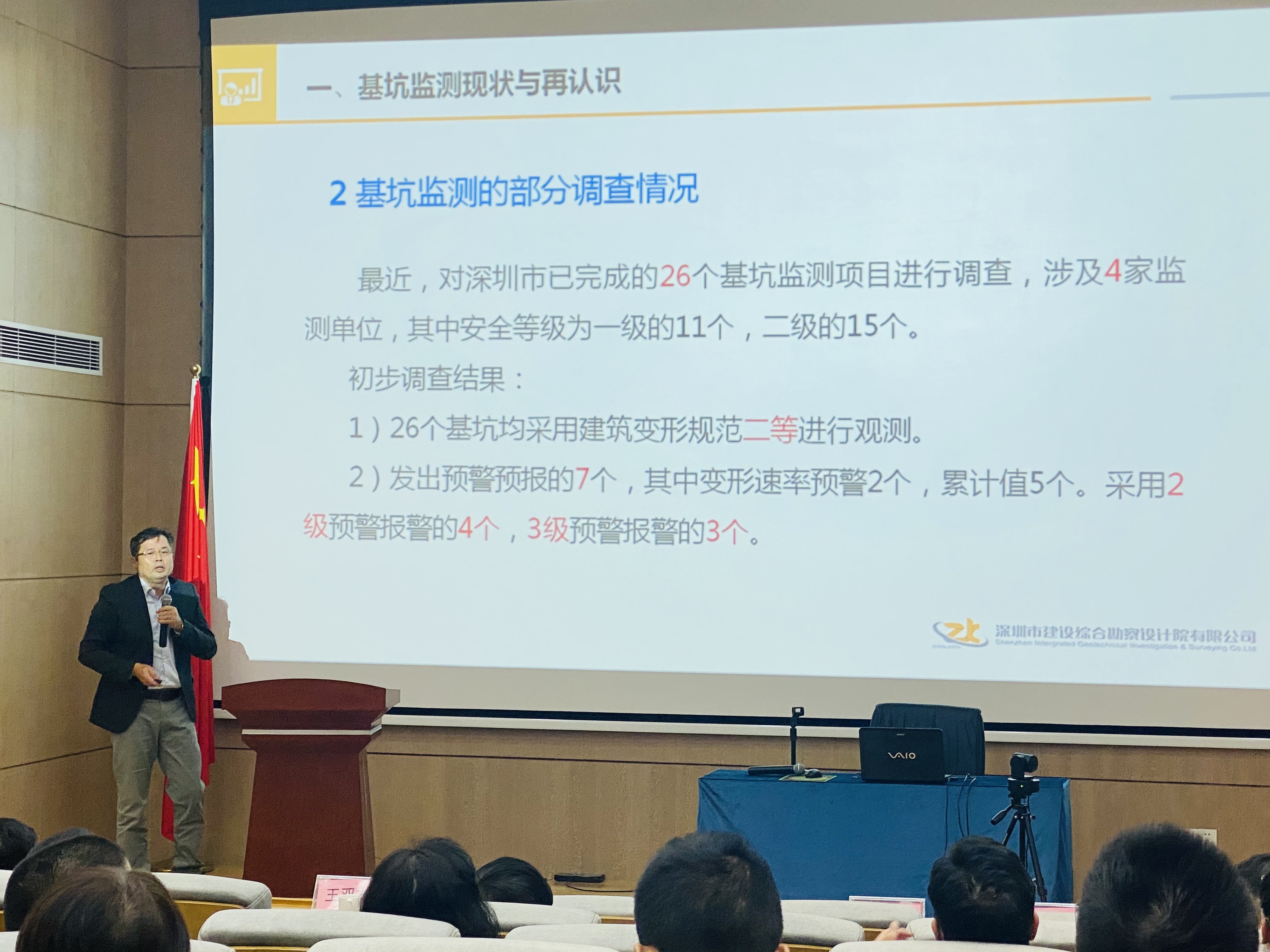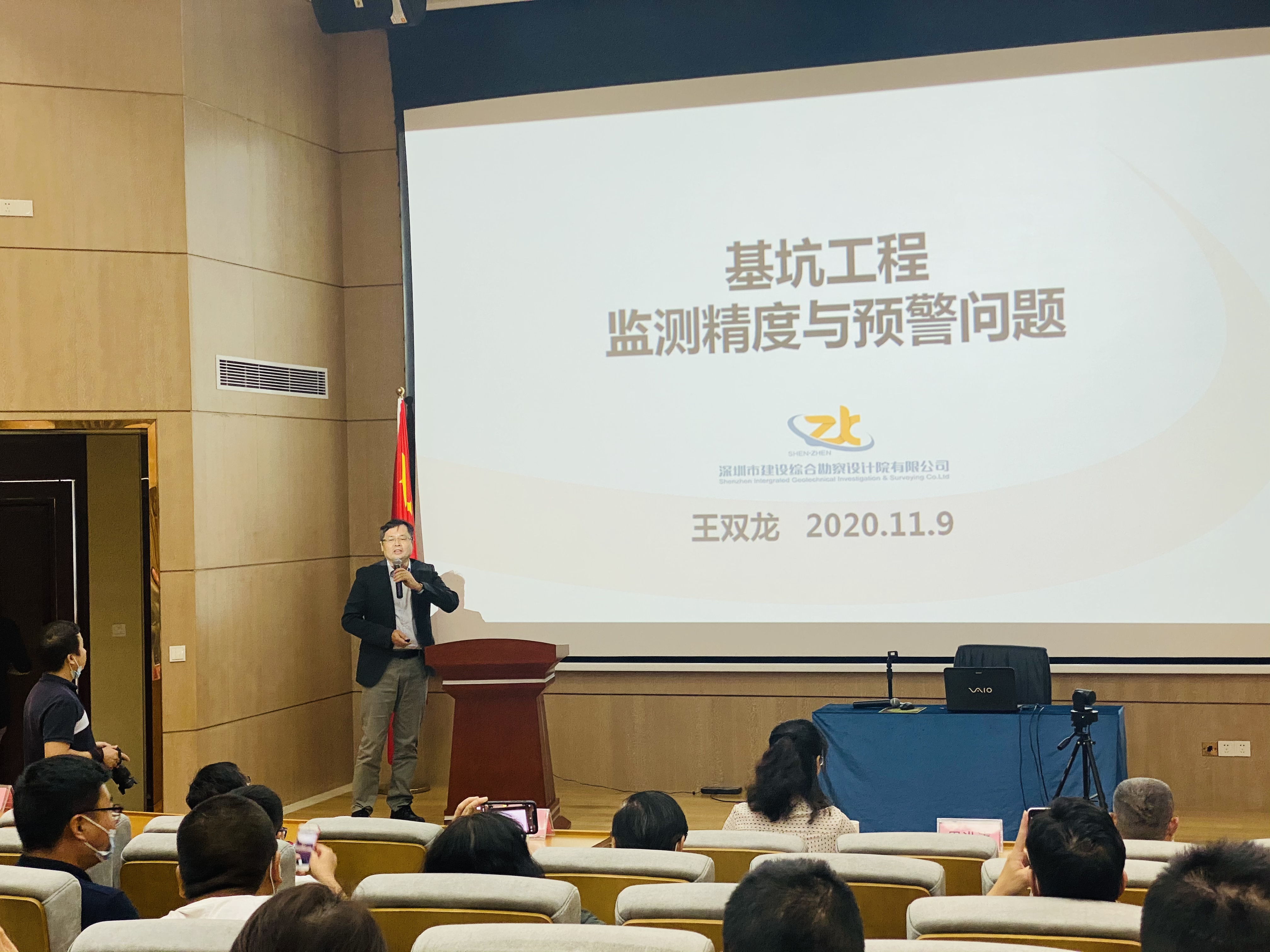 作为深圳市首届勘察设计大师,王双龙总经理受邀为本次公益讲堂作《基坑工程的监测精度&预警问题》报告分享,主要通过基坑监测现状与再认识、主要变形监测标准及其局限性、监测精度问题及存在过度预警的倾向四个方面进行了介绍,探讨了基坑监测的技术以及存在的问题。