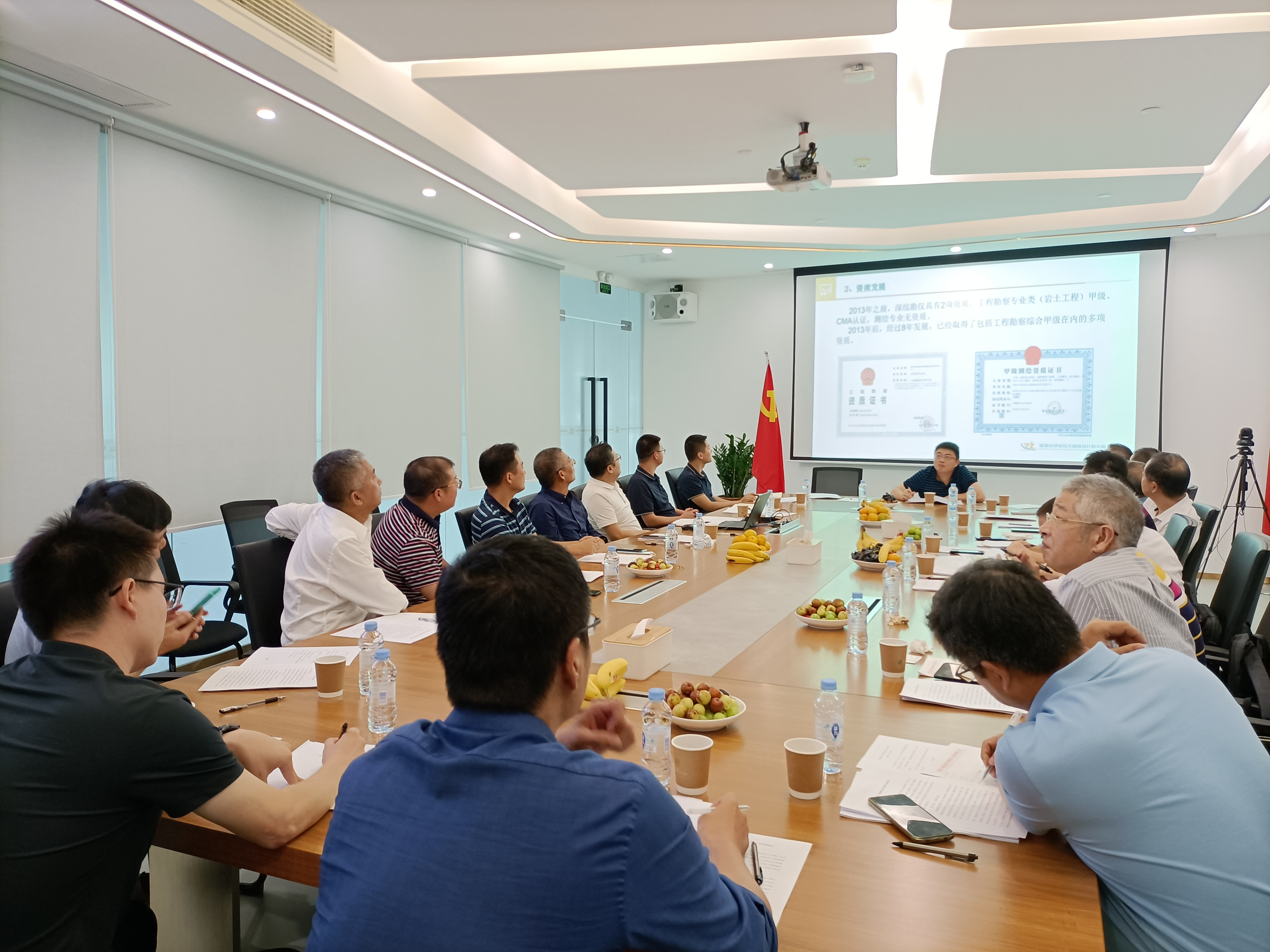 会议首先由王双龙总经理向委员会介绍betway足球反比分平台发展历程、资质发展、人才队伍、学术建设及承接的重要工程情况,并带领大家参观公司办公环境。