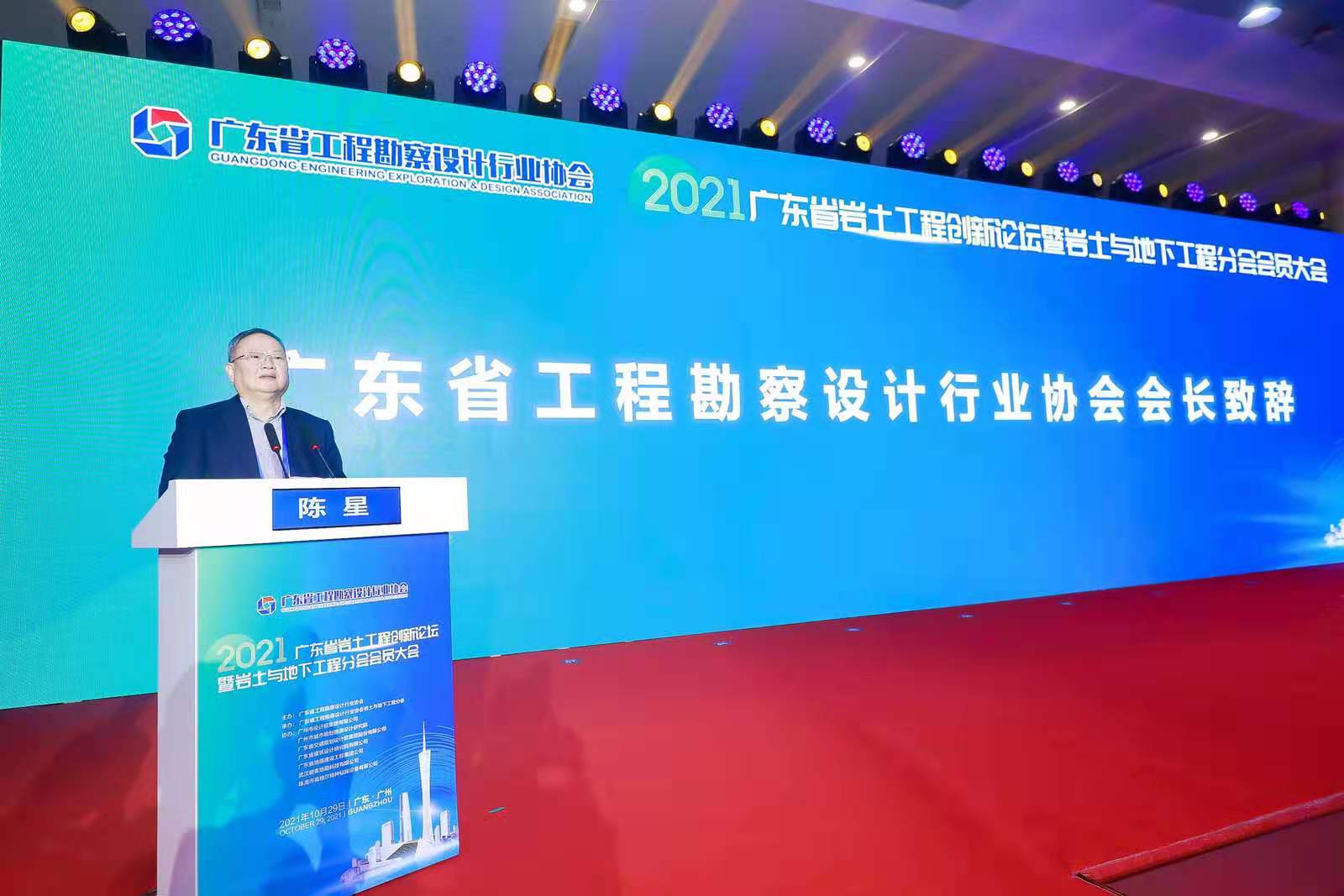 2021年10月29日上午,广东省岩土工程创新论坛暨岩土与地下工程分会大会在广州成功举行,本次会议由线上直播+线下参会相结合,我司张文华副董事长、高伟总工程师带队参加了此次会议。