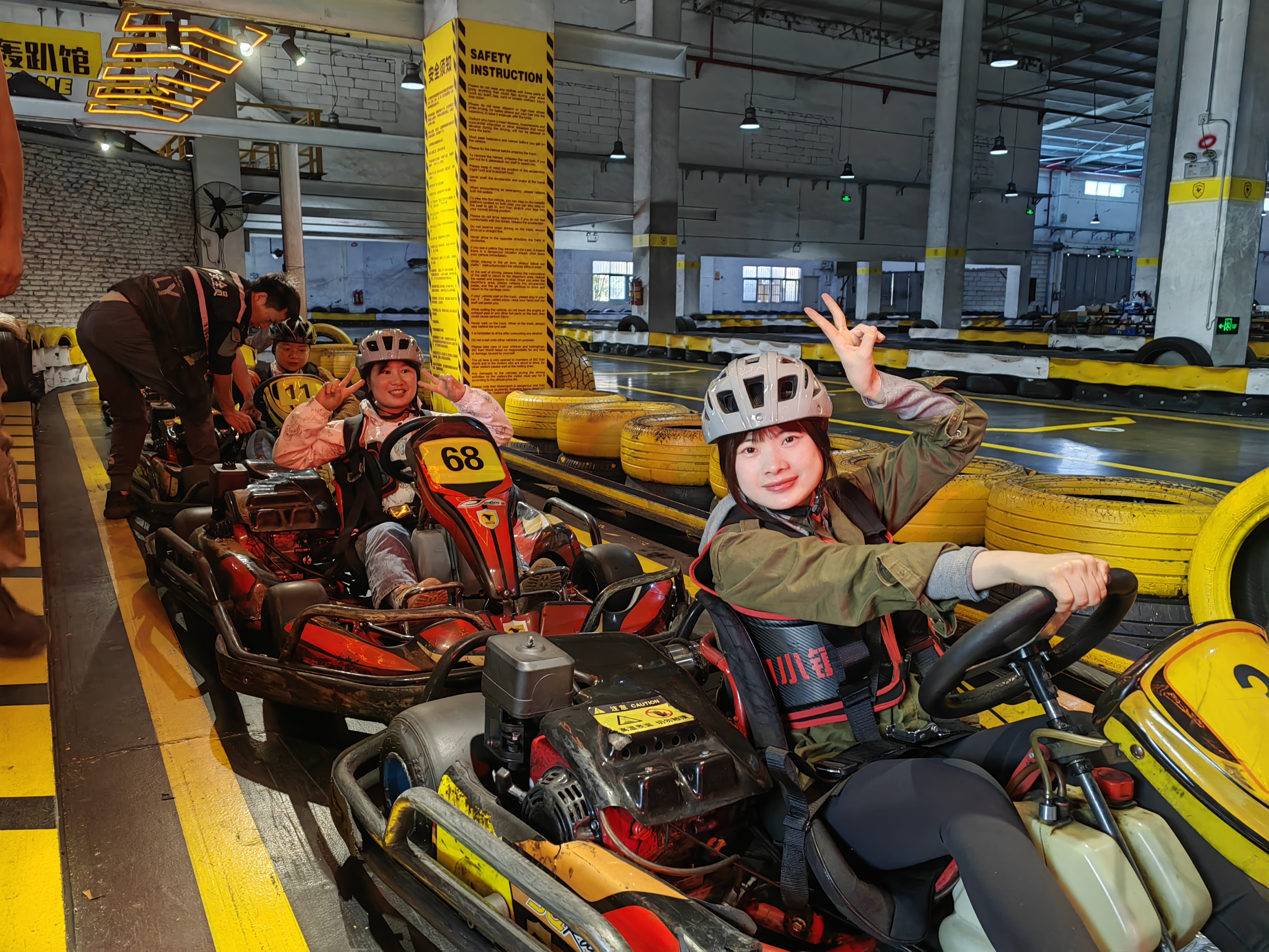 3月8日上午,第一站来到biubiu运动小镇,打卡室内卡丁车,体验一把速度与激情。