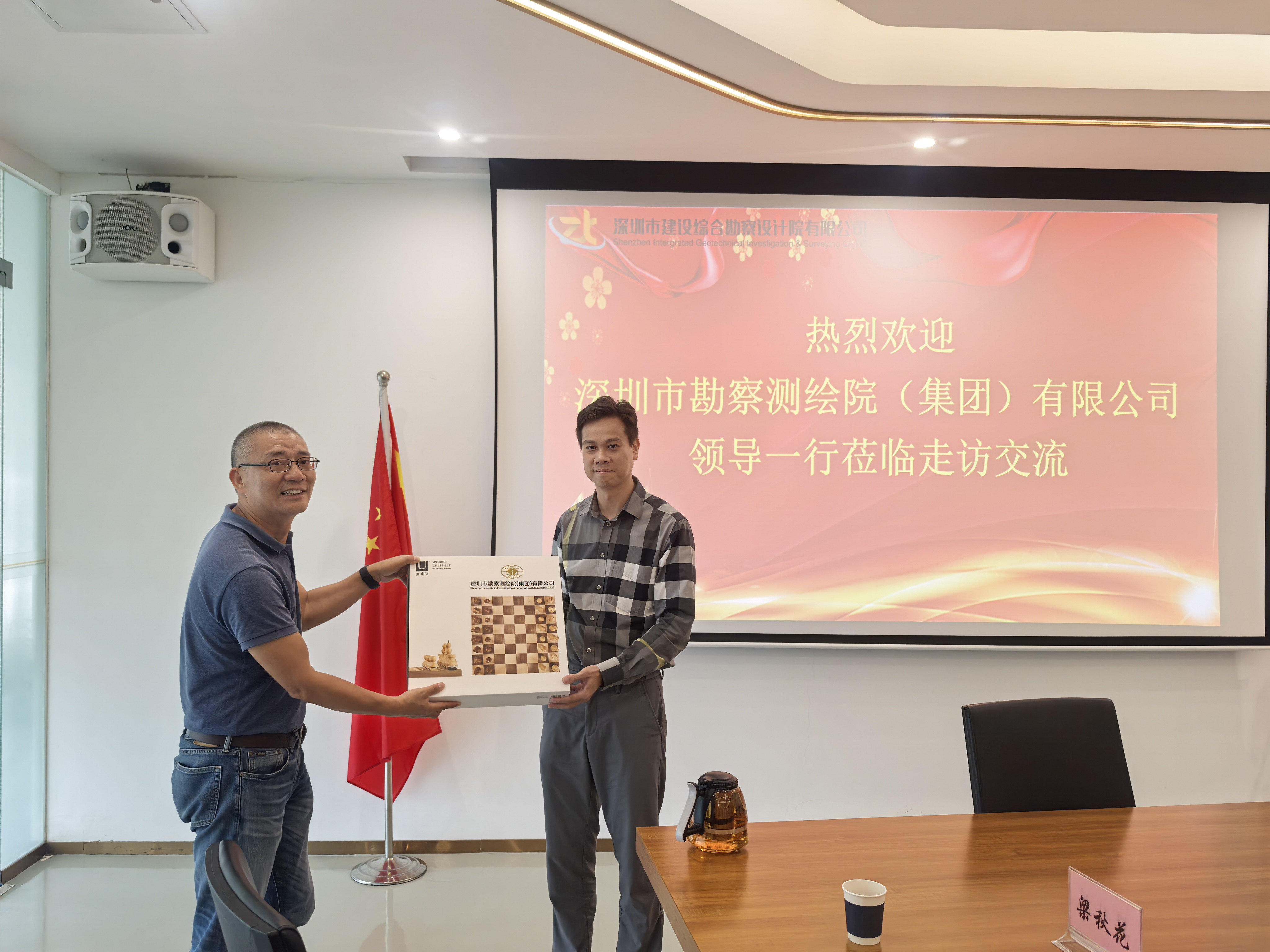 交流会尾声,深勘集团董事长代表来访方向我司赠送了国际象棋礼盒,这幅象棋象征勘察设计人严谨的思维与开放的气度,期待双方在未来的“对弈”走出合作共赢的妙手。